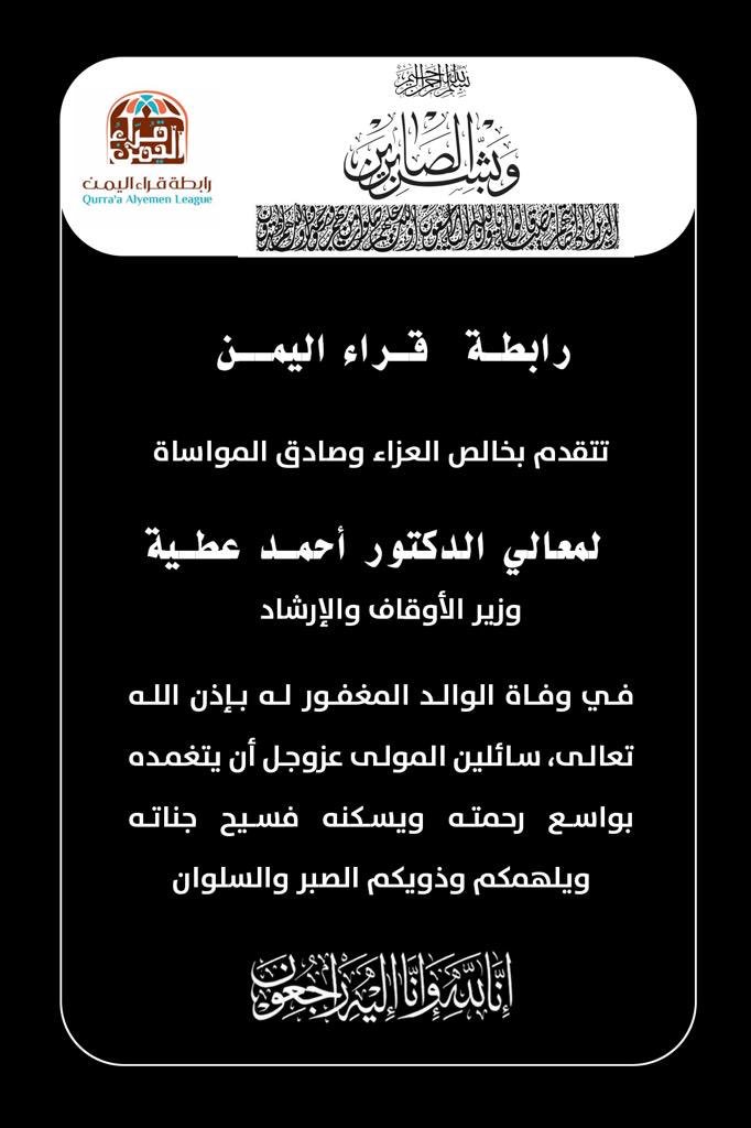 تعزية و مواساة للأخت أحلام يحيى العباكي بوفاة المغفور له بإذن الله تعالى والدها سائلين المولى عز وجل أن يتغمد الفقيد بواسع رحمته