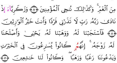 المصحف المحفظ رواية السوسي عن أبي عمرو سورة الأنبياء الآية 88