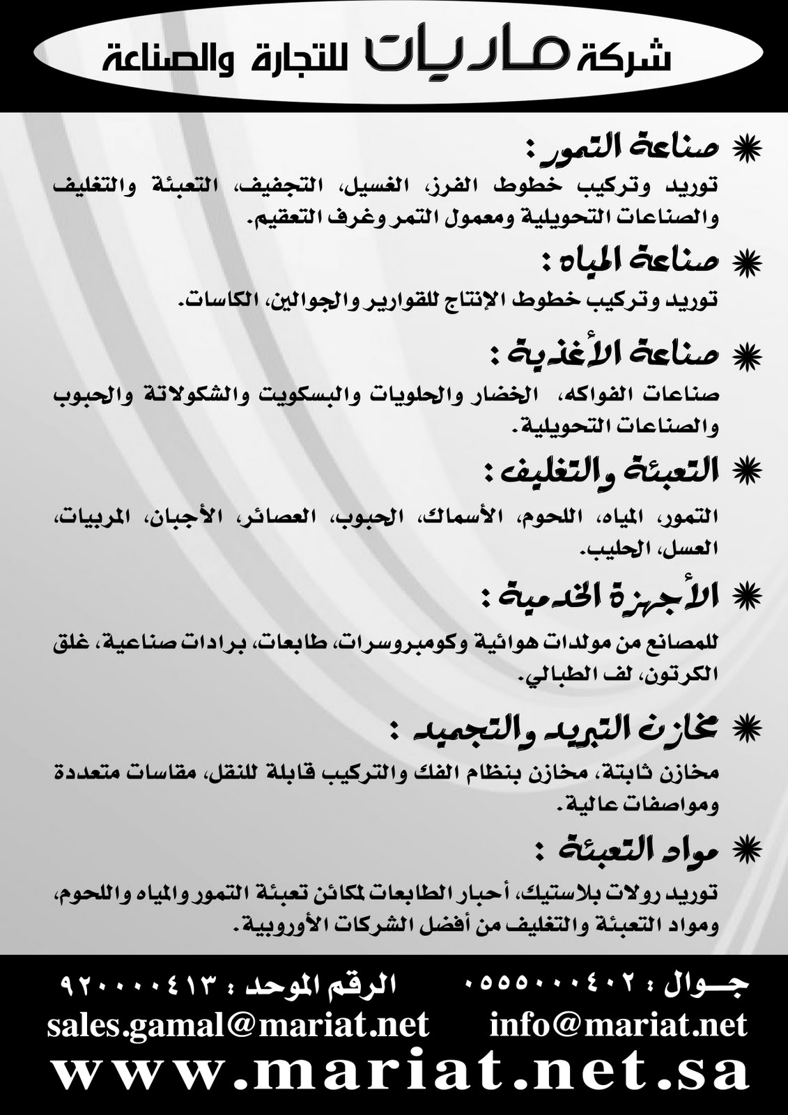 شركة ماريات للتجارة والصناعة الرياض طريق الملك عبد العزيز
